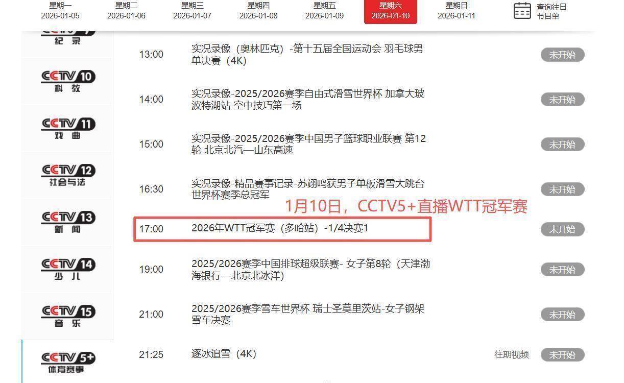 对于守在电视机前的中国球迷来说,还有一个不得不面对的变化:央视的直播计划改了。 原定的直播时间被推迟,而且关键的晚间黄金时段,CCTV5将不再直播本次冠军赛。 根据最新的节目表,CCTV5+会在下午17点开始直播部分比赛,但到了晚上,频道将转向CBA等赛事。 这意味着,想看陈幸同与张本美和这场焦点之战,以及深夜张本智和与勒布伦的巅峰对决,球迷们需要通过咪咕视频等网络平台来观看。这个调整,让不少习惯在电视大屏幕前观赛的球迷感到有些不便,也引发了一些讨论。